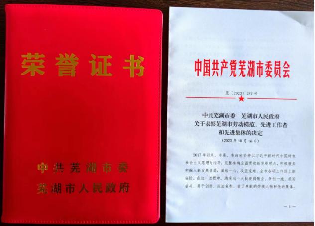 熱烈祝賀公司董事長程華榮獲“蕪湖市勞動模范”榮譽稱號